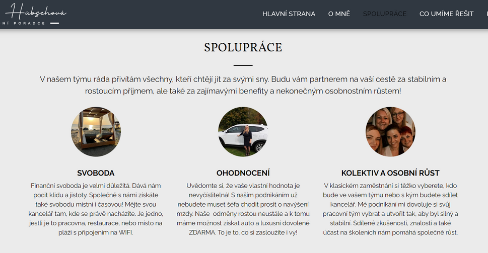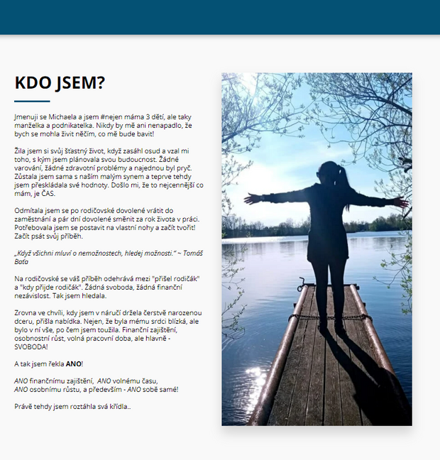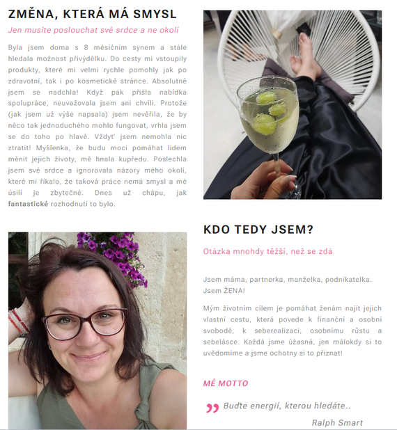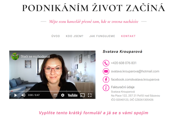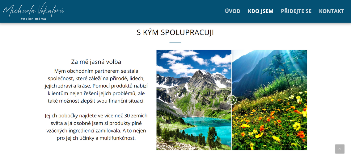 V jednoduchosti je krása! Webová prezentace úžasné podnikatelky s použitím posuvných fotografií a s vloženým formulářem na sběr kontaktů potenciálních klientů
